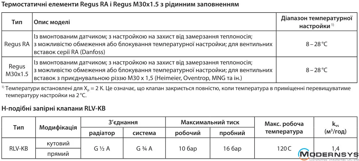 - Датчик Danfoss Regus®, Н-образным клапаном, тип RLV-KB