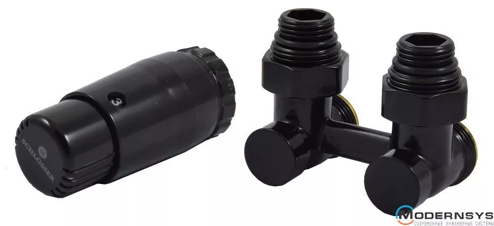 Технические характеристики: Комплект радиаторный угловой, черный Schlosser (Шлессер) 3/4x3/4 + 2 1/2x3/4 (600800067.RAL9005)