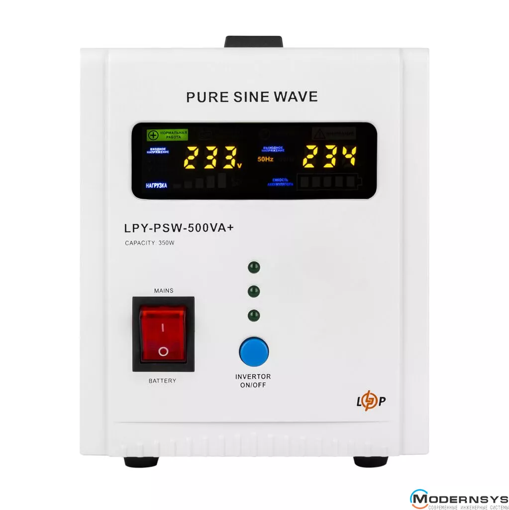 ИБП Logicpower LPY-PSW-500VA+(350Вт)5A/10A в металлическом корпусе имеет следующие технические характеристики:
