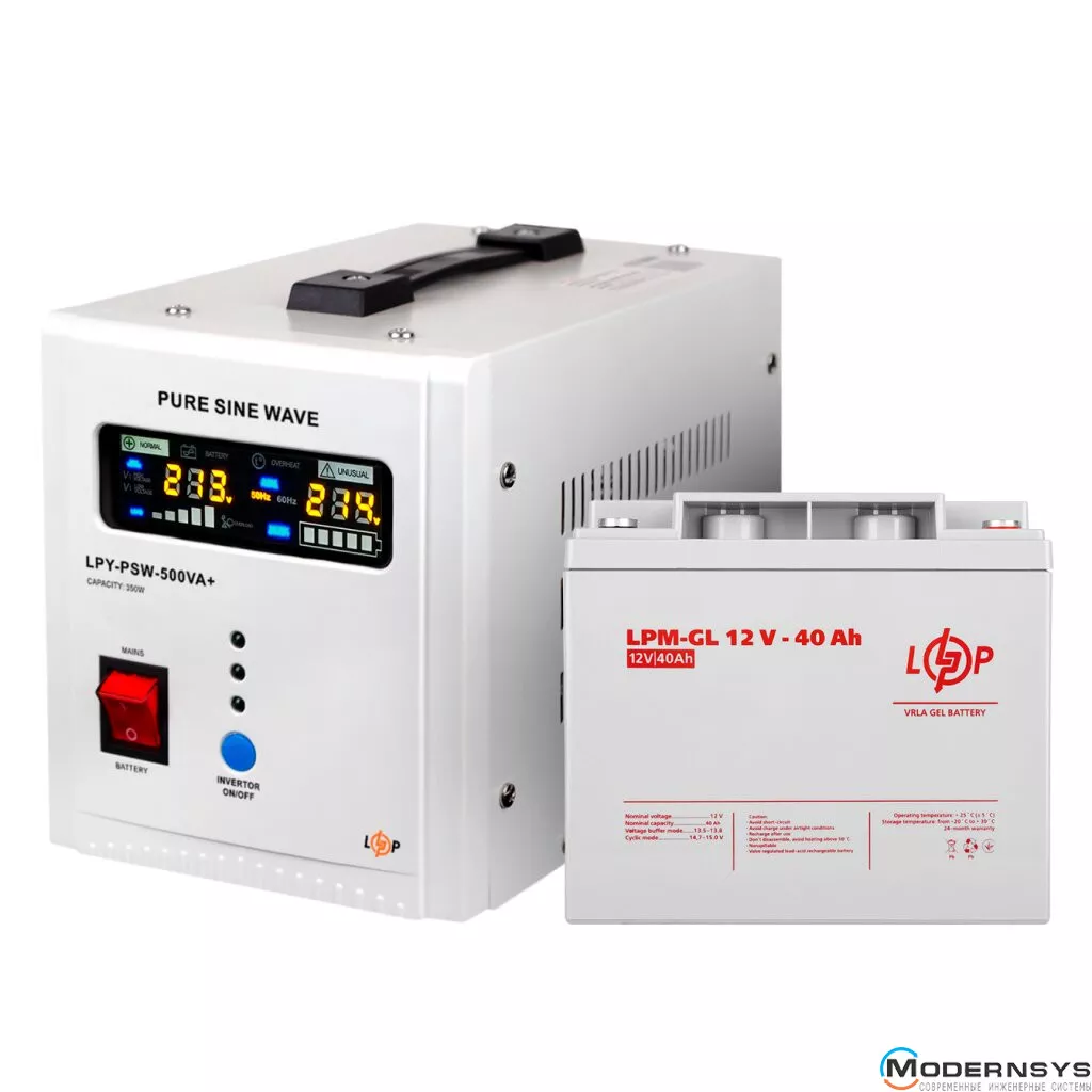 Технические характеристики: Комплект резервного питания для котла LogicPower (Лоджик Повер) ИБП + гелевая батарея (UPS 500 + АКБ GL 520W)