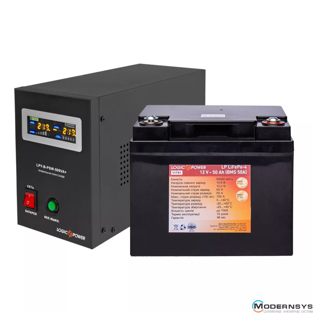 Комплект резервного питания для котла LogicPower ИБП + литиевая LiFePO4 батарея (UPS B500VA + АКБ LiFePO4 750W) (LP10828)