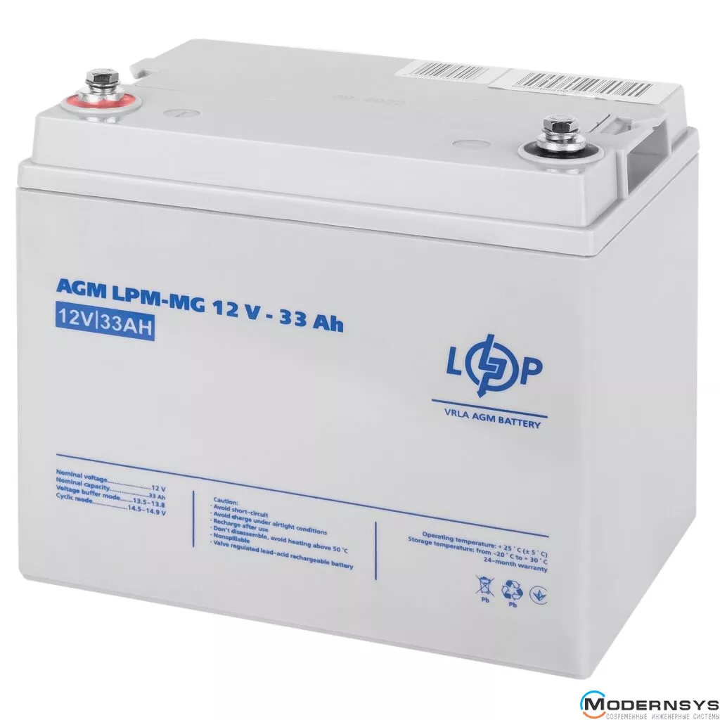 Технические характеристики аккумуляторной батареи LogicPower AGM LPM-MG 12V - 33 Ah:
