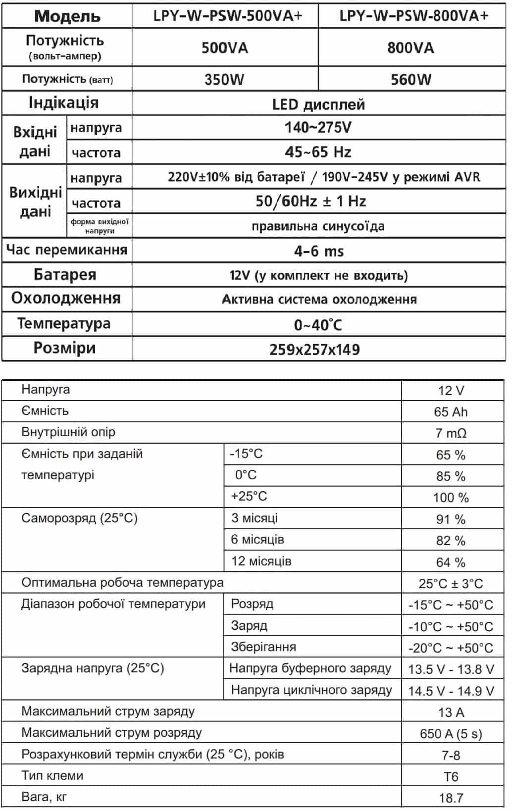 Источник бесперебойного питания с правильной синусоидой мощностью 500/350 VA/W выполняет 2 основные функции: стабилизация напряжения (на входе - 140-275V, на выходе - 220±10%V) и преобразование постоянного тока от аккумулятора в источник переменного напряжения 220V. UPS системы бесперебойного питания управляется микропроцессором. Аккумуляторная батарея обеспечивает подачу электроэнергии в режиме резервного питания.