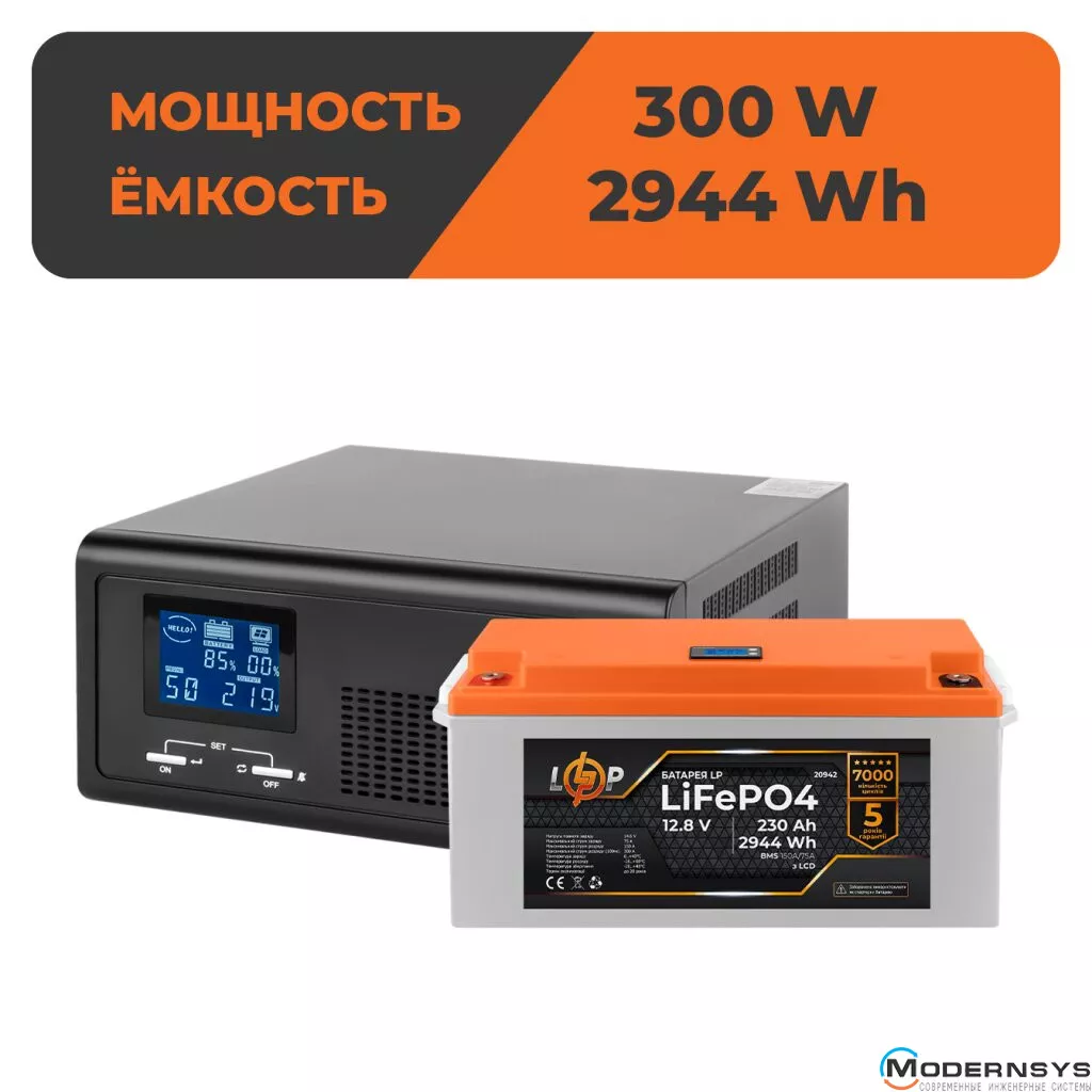 Комплект резервного питания LogicPower ИИБП с правильной синусоидой 12V LPE-B-PSW-430VA+ (300Вт) 1-15A + Аккумулятор LP LiFePO4 LCD 12V (12,8V) - 230 Ah (2944Wh) (BMS 150A/75A) пластик разработан и введен в эксплуатацию для обеспечения бесперебойного питания электрических газовых котлов, систем видеонаблюдения, компьютерной техники и других устройств, которые работают в режиме 24/7/365. Комплект может быть использован, как источник бесперебойного питания для бомбоубежища.