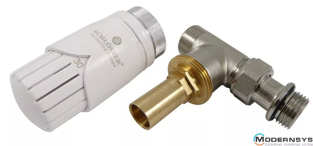 Комплект RTLтермостатическая головка Schlosser Diamant, соединение PEX , никелированный, угловой (603200012)