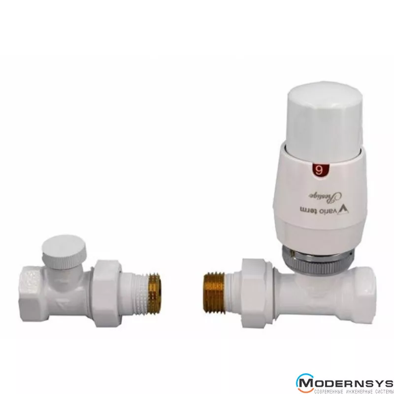 термостатический клапан прямой SFK, запорный клапан прямой FK, термостатическая головка PrestigeТехнические характеристики: Комплект термостатический Vario Term (Варио Терм) ELEGANT прямой White