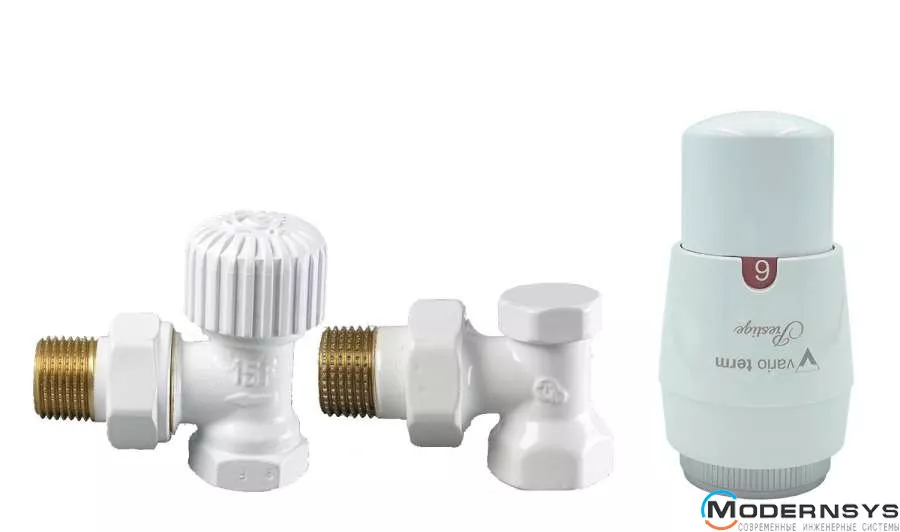 термостатический клапан угловой SFK, запорный клапан угловой FK, термостатическая головка PrestigeТехнические характеристики: Комплект термостатический Vario Term (Варио Терм) ELEGANT угловой белый.