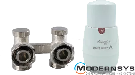 Комплект Standard тип V прямой предназначен для отопительных приборов с нижним подключением к трубопроводам системы отопления. Расстояние между подключениями 50 мм.