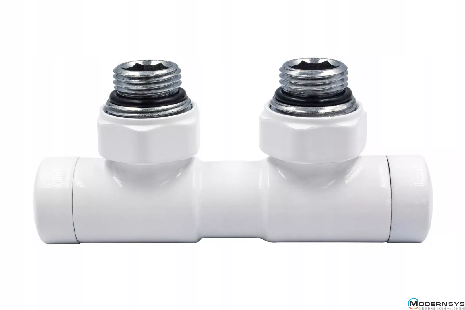 Запорный клапан Vario Term, 50 мм, TWINS, предназначенный для отопительных приборов, полотенцесушителей с нижним подключением к трубопроводам системы отопления. Расстояние между подключениями 50 мм.