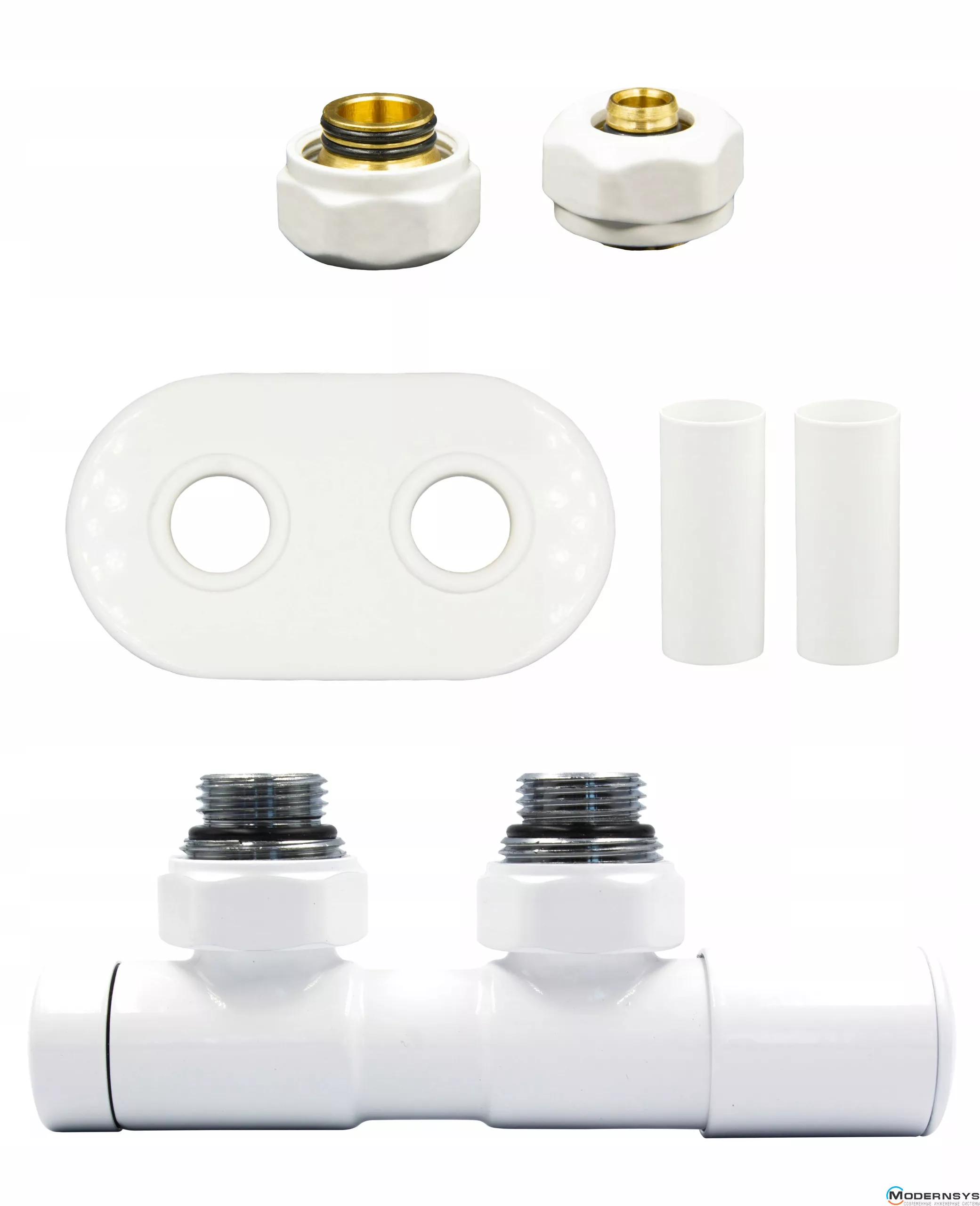 Комплект регулировочный Vario Term, 50 мм, TWINS REGULATED, All In One, предназначенный для отопительных приборов, полотенцесушителей с нижним подключением к трубопроводам системы отопления. Расстояние между подключениями 50 мм. Есть возможность выбора фитингов на PEX или Cu: