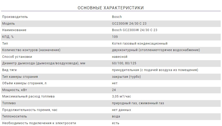 Технические характеристики: Конденсационный котел Bosch (Бош) GC2300iW 24/30 C 23