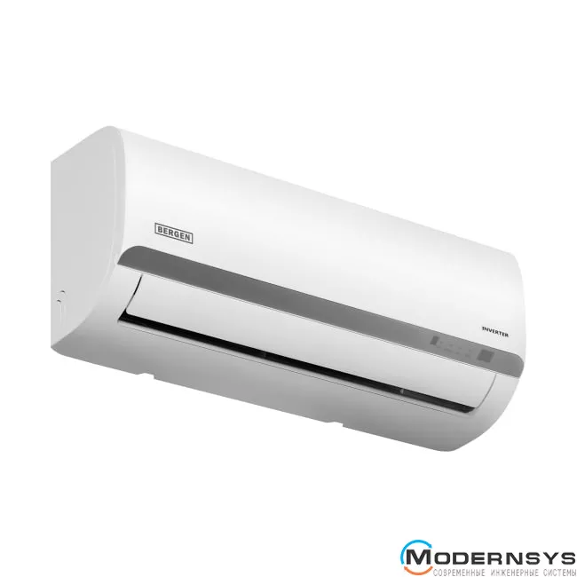 Bergen серии Fjord inverter - инверторная сплит система бытового типа (1 внутренний + 1 внешний блок) выполнена в классическом стиле, имеет белый цвет и глянцевое покрытие. Традиционный, простой вариант кондиционера с доступным ценником и ключевым набором опций.
