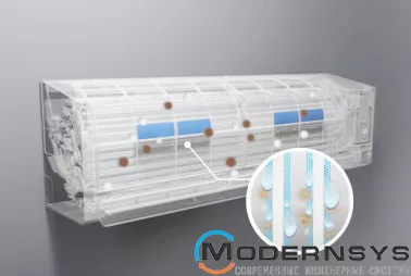 Благодаря специальному покрытию на теплообменнике Magic Coil, загрязняющие вещества, такие как пыль и грязь, непрерывно отводятся вместе с конденсатом. Функция самоочистки препятствует образованию сырости, плесени и неприятных запахов во внутреннем блоке.