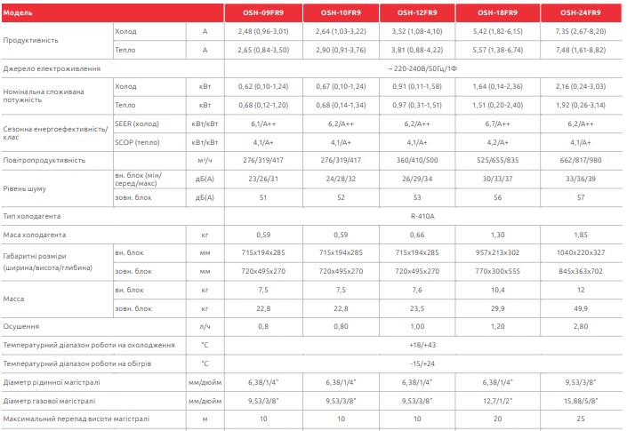 Технические характеристики: Кондиционер OLMO (Олмо) INNOVA INVERTER OSH-24FR9INNOVA INVERTER OSH-24FR9