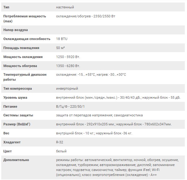 Технические характеристики: Кондиционер Osaka (Осака) Aura DC Inverter STA-18HW (Wi-Fi)
