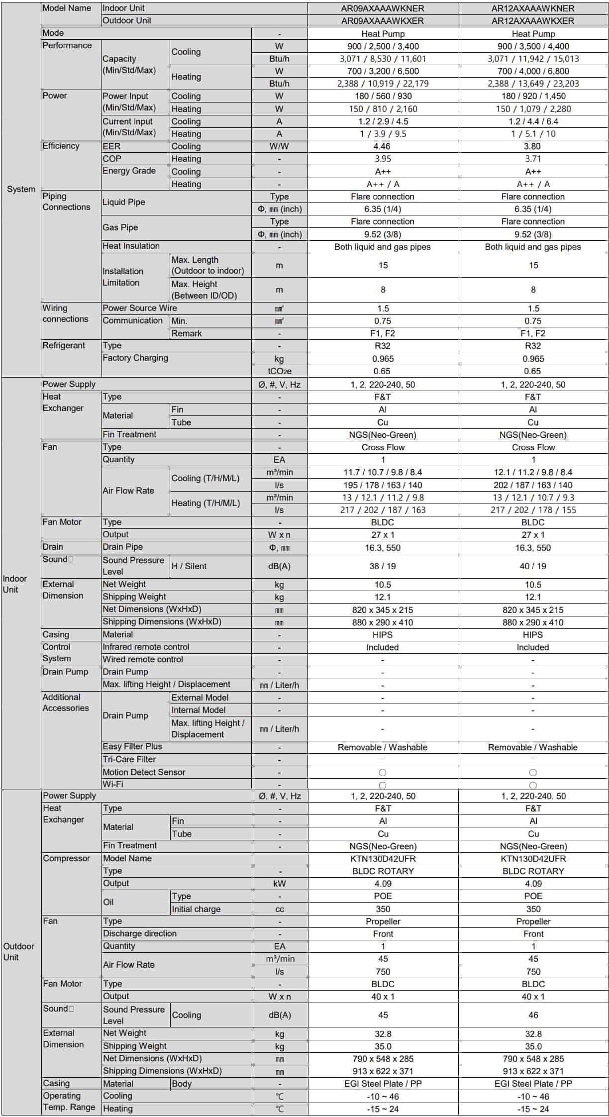 *На основании испытаний модели кондиционера AX40AQ09TSLXEA по сравнению с кондиционером AR09TXCAAWKNEU.