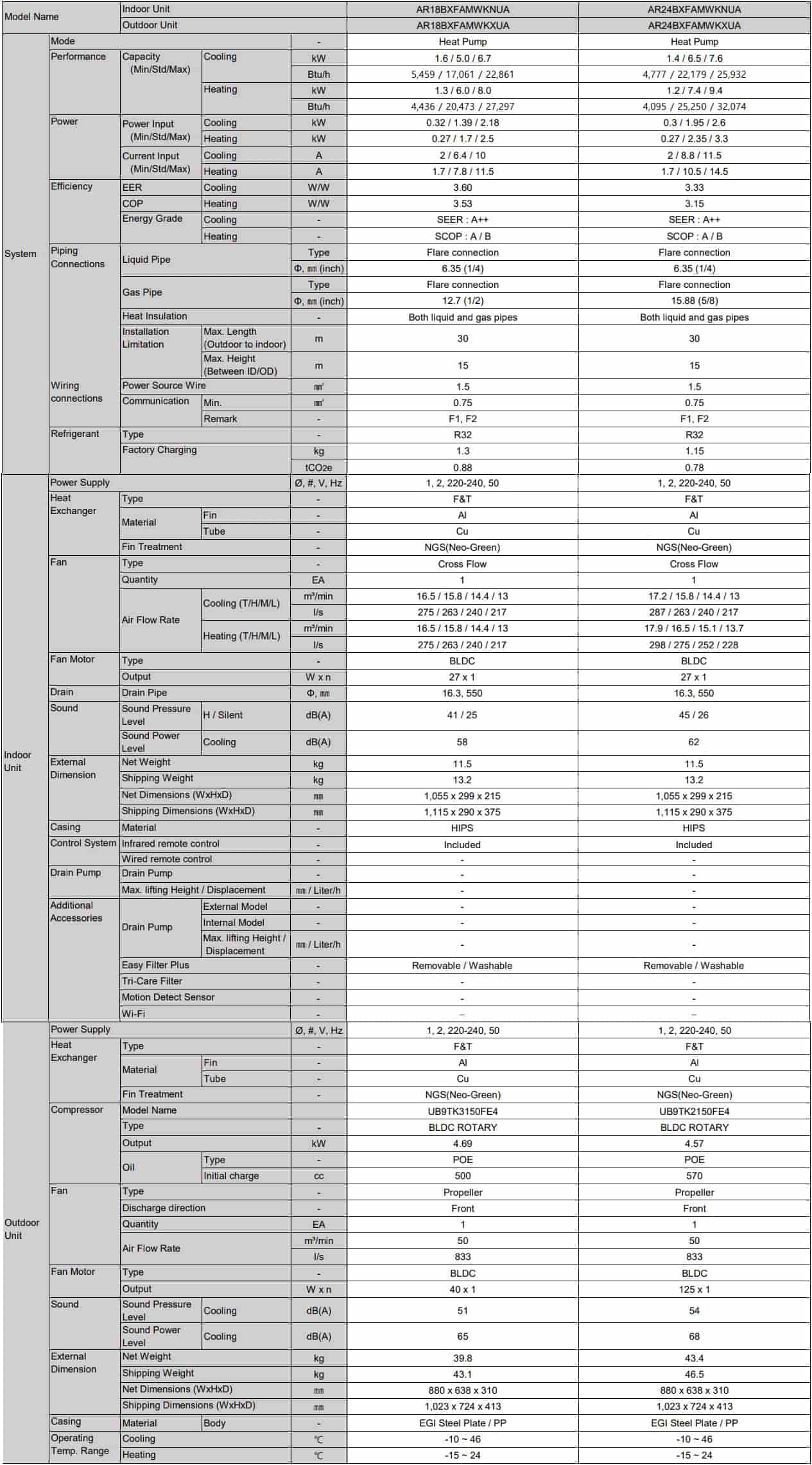 Технические характеристики: Кондиционер Samsung (Самсунг) GEO WindFree WiFi Mass 5 кВт
