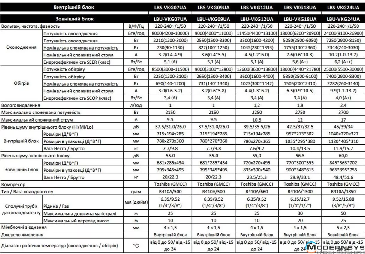 Технические характеристики: Кондиционер сплит-система Leberg (Леберг) Инвертор Viking LBS-VKG18UA2/LBU-VKG18UA2