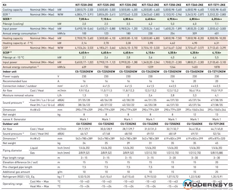 Технические характеристики: Кондиционер сплит-система Panasonic (Панасоник) Инвертор Compact heat Pump CS-TZ50ZKEW/CU-TZ50ZKE