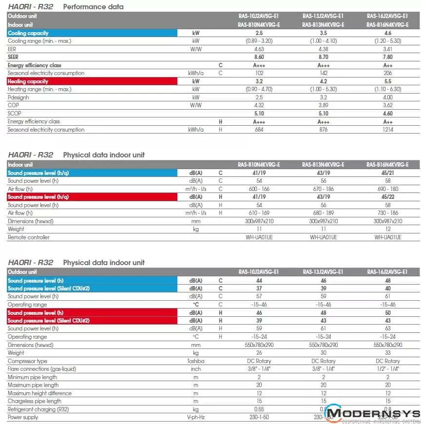Технические характеристики: Кондиционер сплит-система Toshiba (Тошиба) Инвертор Haori RAS-B16N4KVRG-E/RAS-16J2AVSG-E1