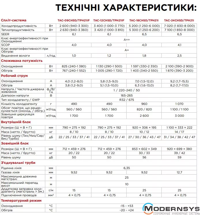 Технические характеристики: Кондиционер TCL TAC-09CHSD/TPH21IF Inverter R32 WI-FI