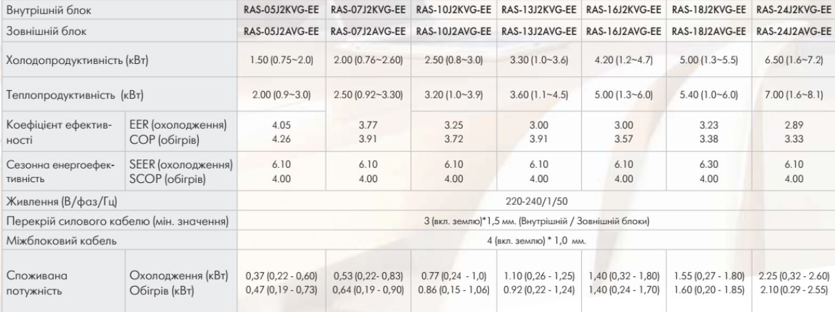 Технические характеристики: Кондиционер Toshiba (Тошиба) RAS-24J2KVG-UA/RAS-24J2AVG-UA