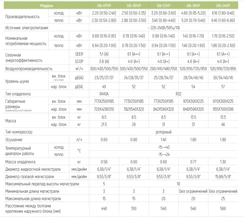 Технические характеристики: Кондиционер TOSOT (Тосот) EXPERT INVERTER GB-07VP2