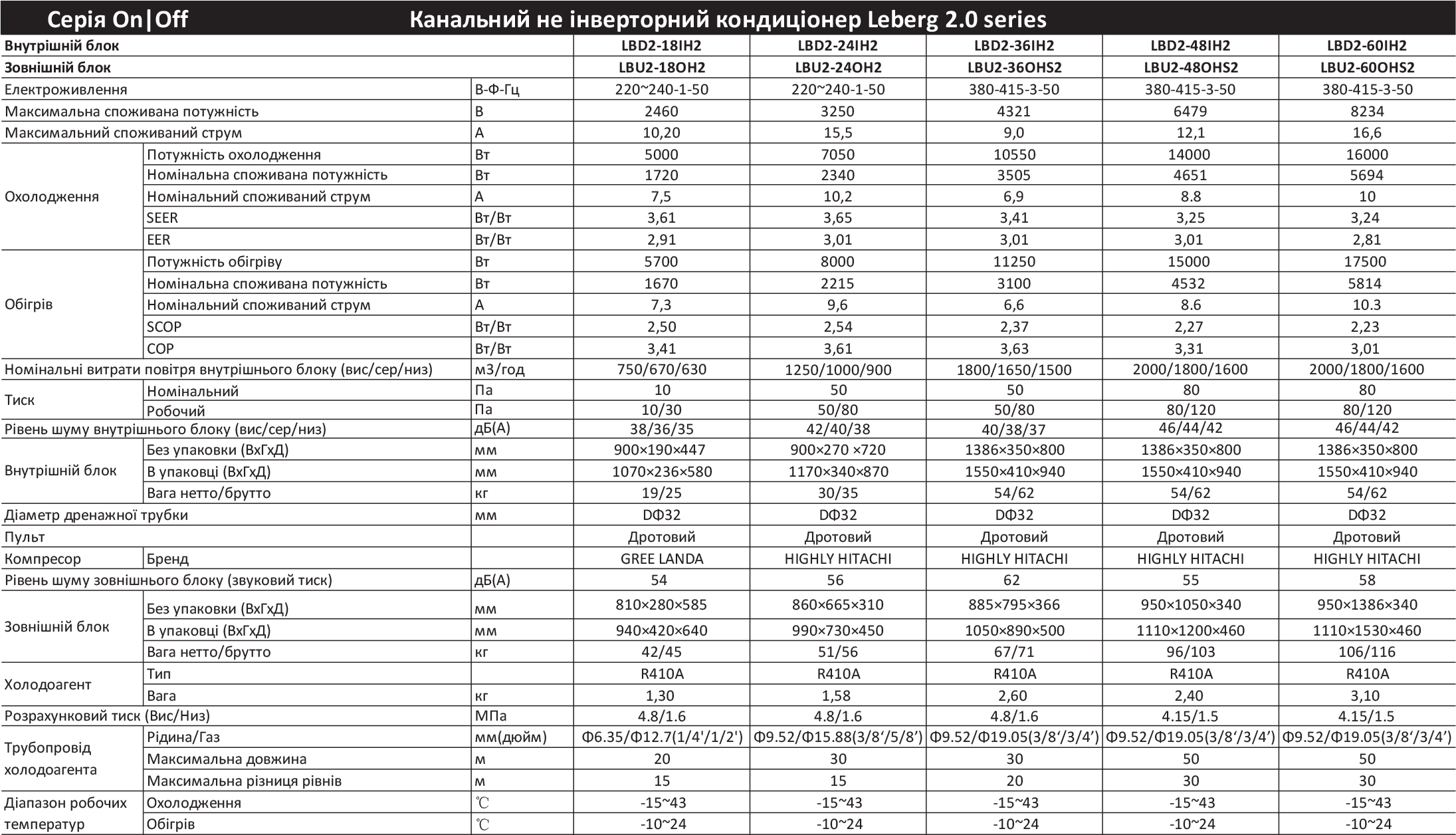 Технические характеристики: Кондиционер Leberg (Леберг) LBD2-24IH2/LBU2-24OH2