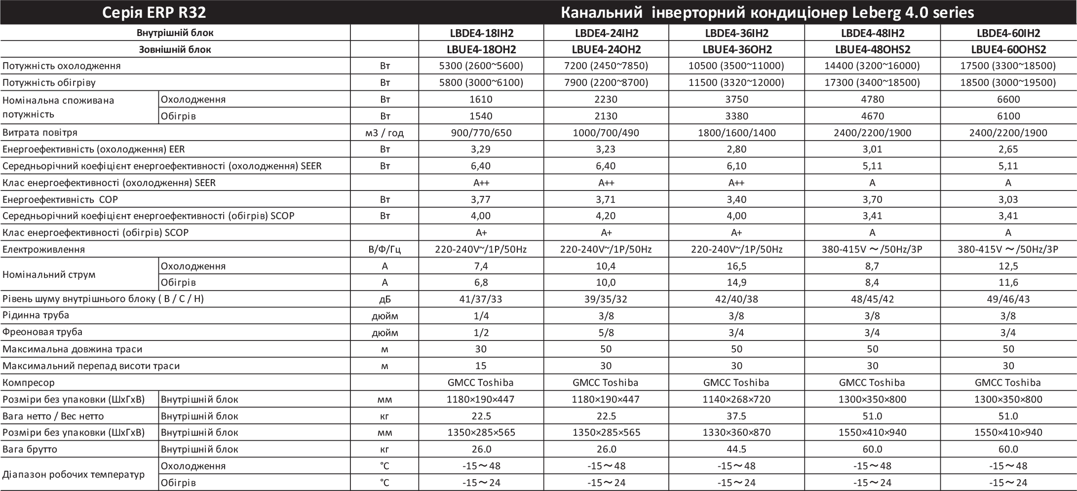 Технические характеристики: Кондиционер Leberg (Леберг) LBDE4-60IH2/LBUE4-60OHS2