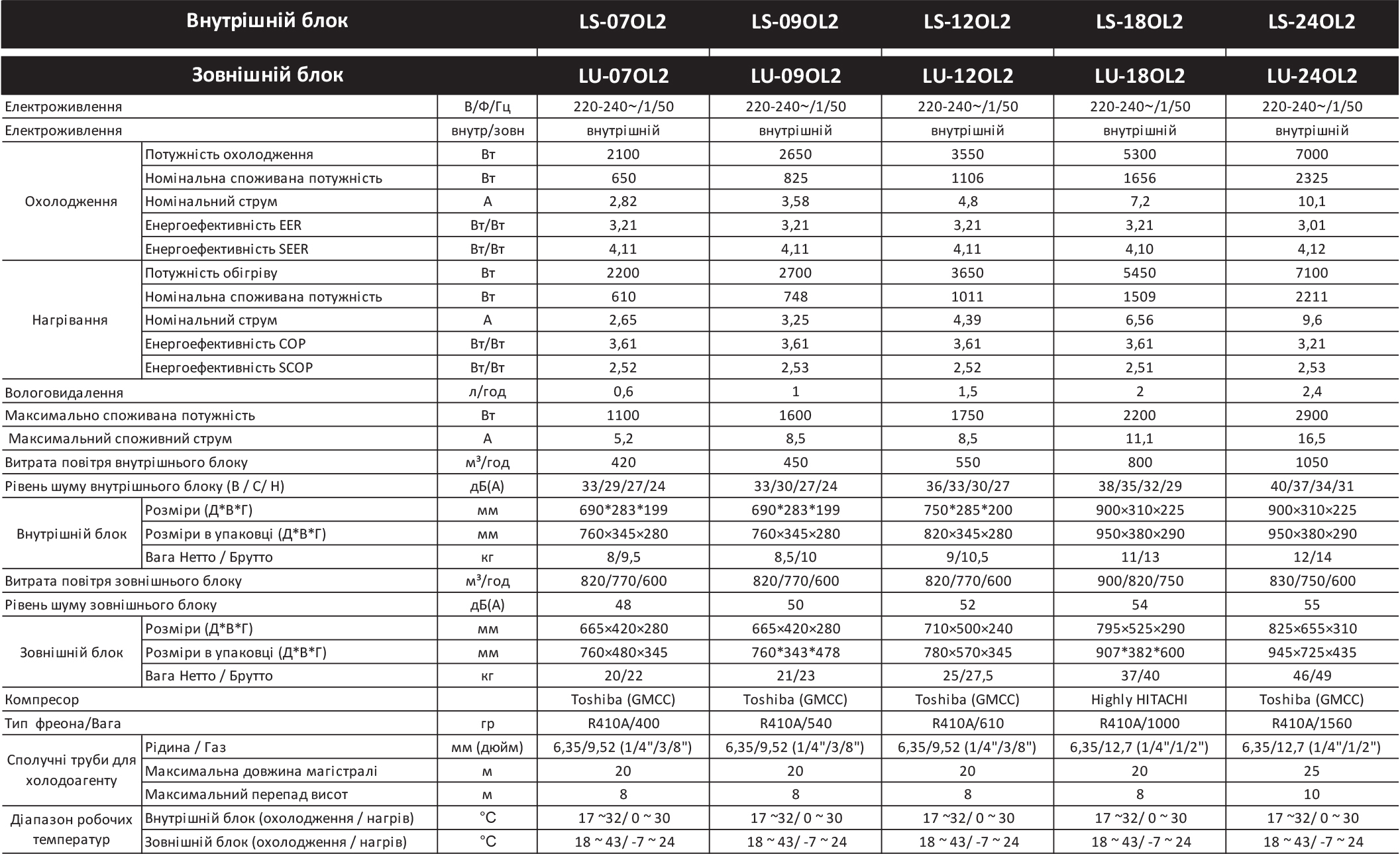Технические характеристики: Кондиционер Leberg (Леберг) LS/LU-09OL2