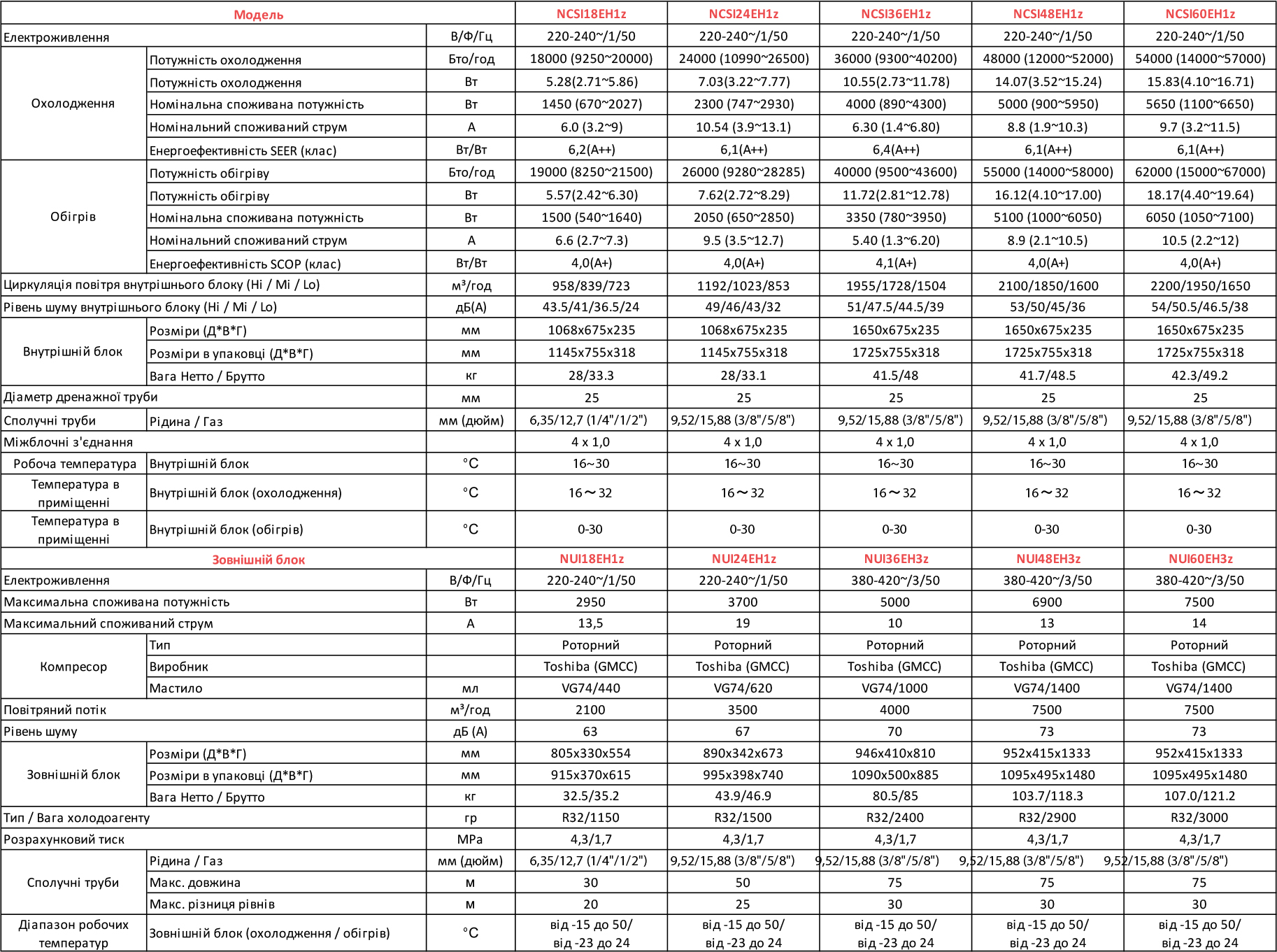 Технические характеристики: Кондиционер Neoclima (Неоклима) NCSI48EH1/NUI48EH3