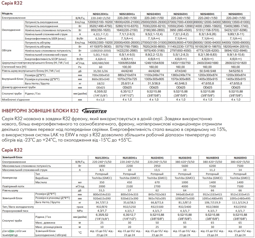 Серия R32 названа благодаря R32 фреону, который используется в кондиционере Neoclima NDSI48EH1/NUI48Eh4. Благодаря использованию нового, более энергоэффективного и озонобезопасного, фреона, полупромышленные кондиционеры получили несколько существенных преимуществ над предыдущими сериями. Энергоэффективность стала выше в среднем на 15%, а использование систем LAK и EXW в паре с R32 позволило увеличить рабочий диапазон температур на обогрев от -23 ° С до + 24 ° С, и охлаждение от -15 ° С до + 55 ° С.