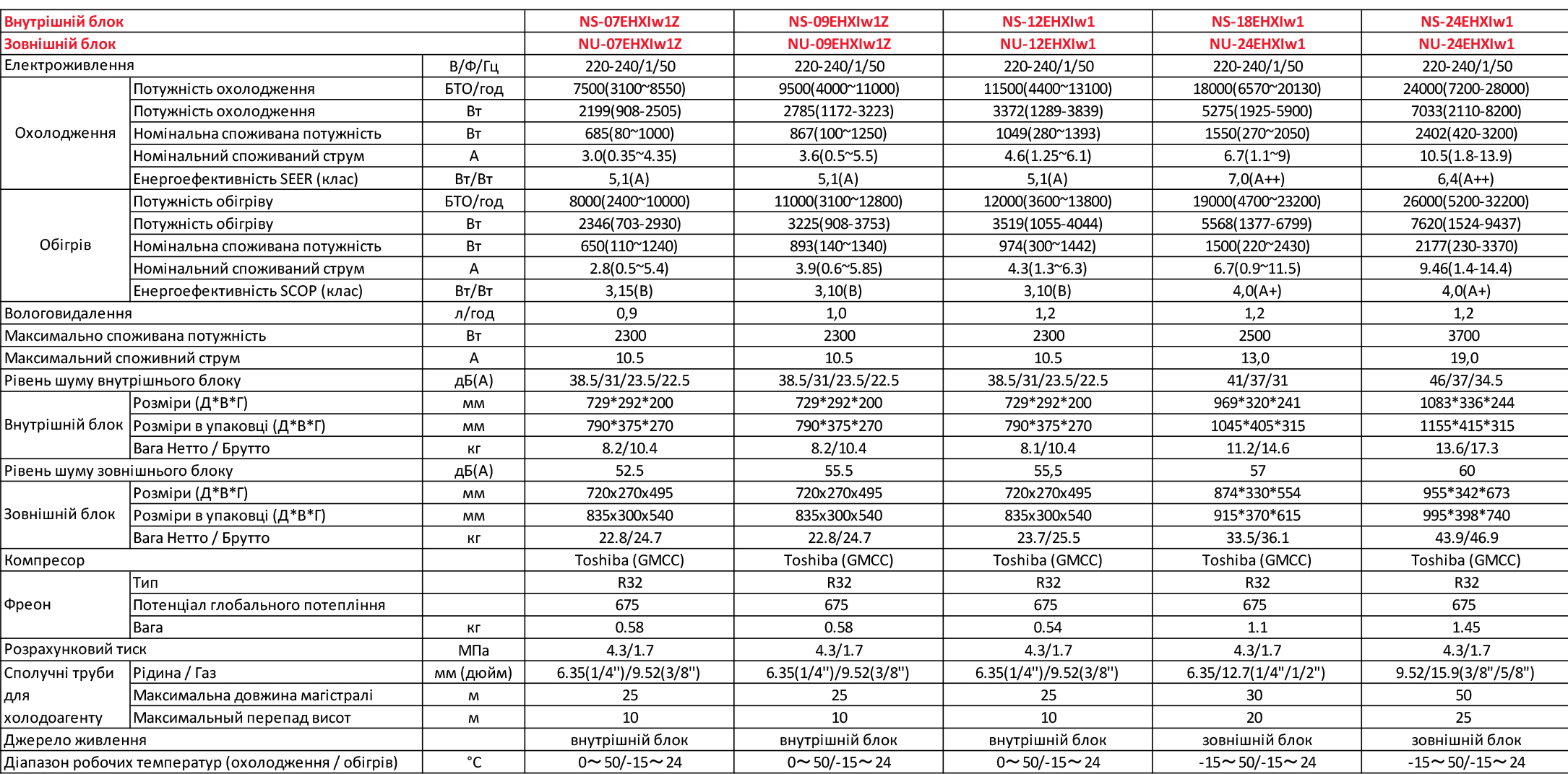 Технические характеристики: Кондиционер Neoclima (Неоклима) NS/NU-12EHXIw1