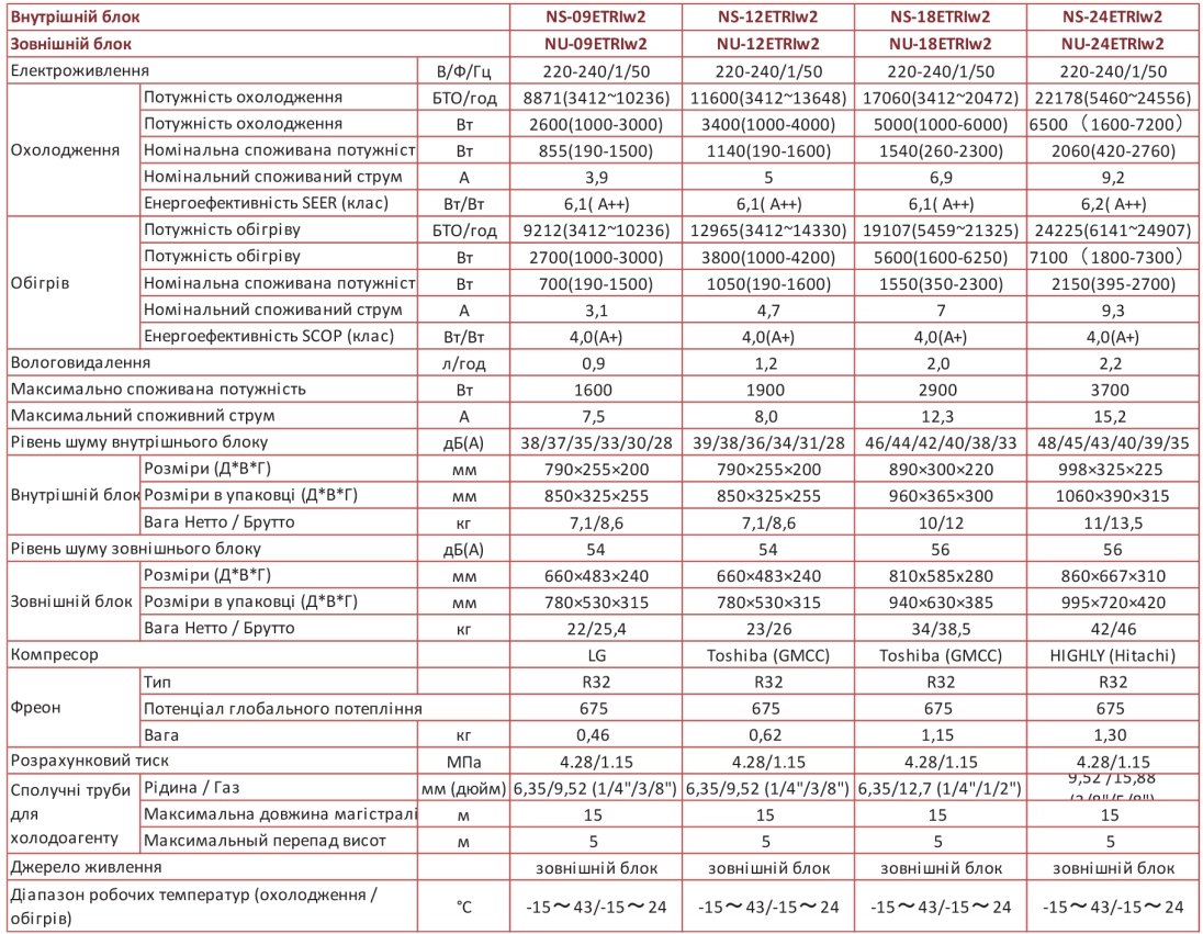Технические характеристики: Кондиционер Neoclima (Неоклима) NS/NU-12ETRIw2
