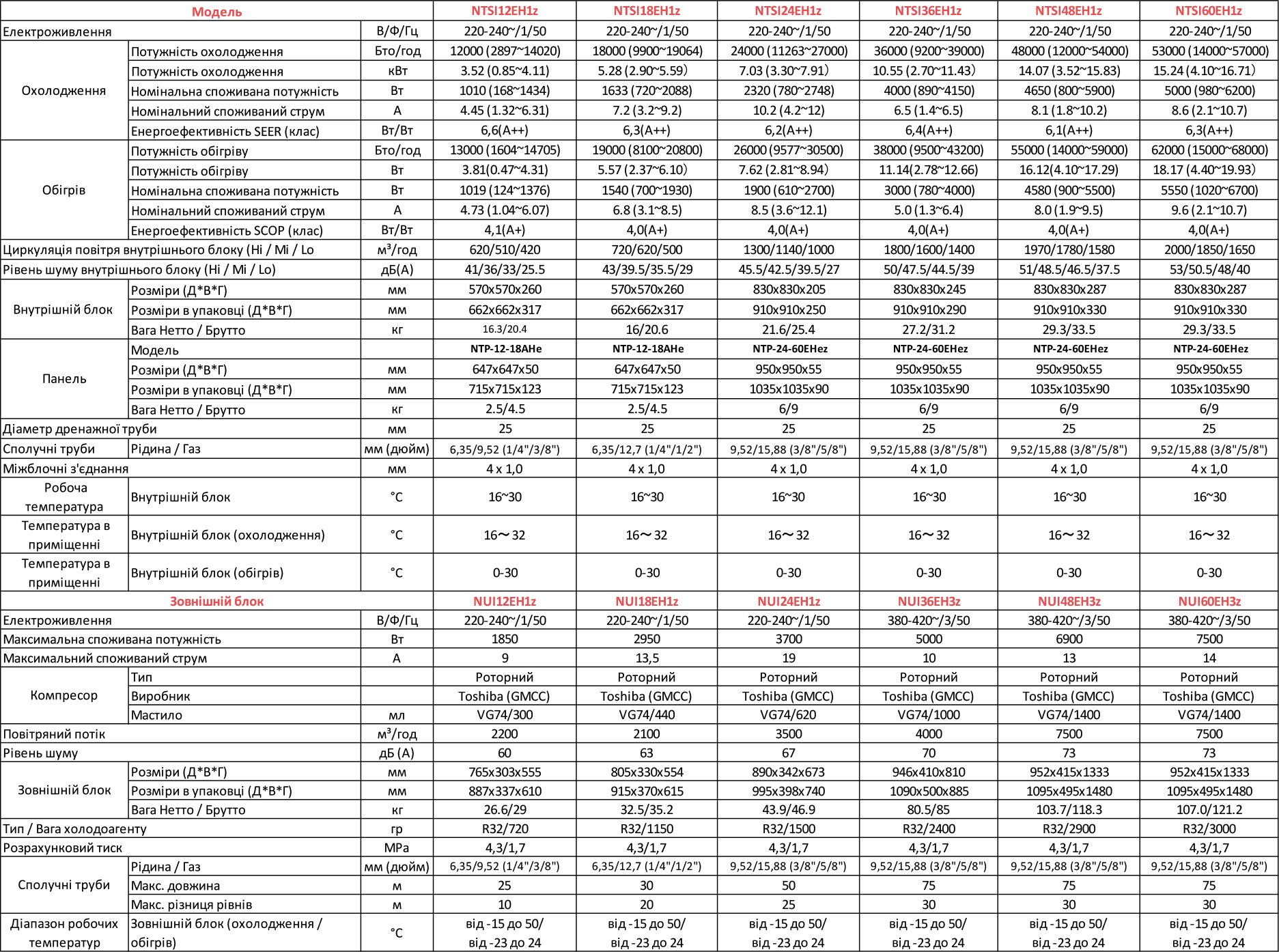 Технические характеристики: Кондиционер Neoclima (Неоклима) NTSI48EH1/NUI48EH3/NTP-24-60AHe