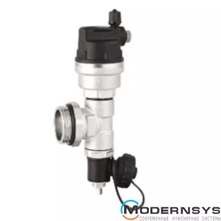 Конечный элемент с клапаном 1" используется для соединения для сантехнического коллектора для автоматического удаления воздуха из системы с помощью поплавкового механизма и возможности наполнения, слива горячего или холодного теплоносителя.
