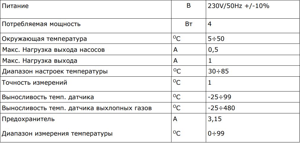 Технические характеристики для контроллера TECH ST-392 zPID
