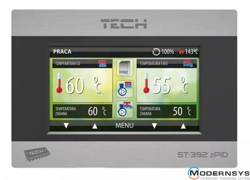 Регулятор температуры SТ-392 с дросселем используется для управления процессом сгорания в домашнем отопительном камине. Этот регулятор управляет работой циркуляционного насоса, дополнительного насоса (ГВС или напольного насоса), дросселя и выходом без напряжения (управление дополнительным устройством). Легко читабельный большой графический дисплей с подсветкой и сенсорным экраном облегчает контроль и изменения параметров регулятора. Легкий монтаж на стене и эстетика устройства являются дополнительными преимуществами регулятора.