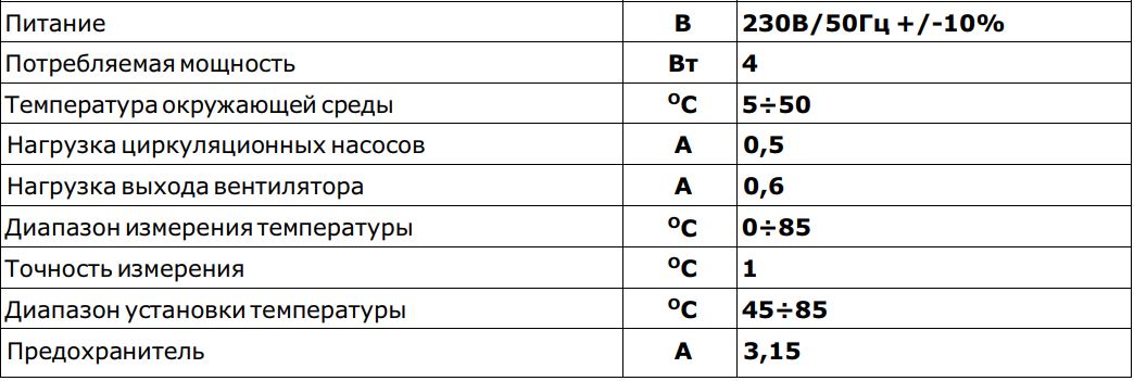 Технические характеристики для контроллера TECH ST-28 SIGMA