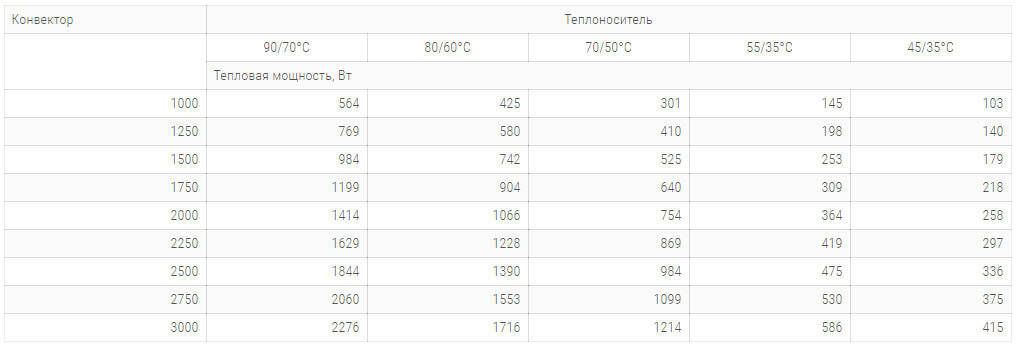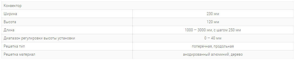 Таблица характеристик конвекторы CARRERA C2 Black 120 естественная конвекция два теплообменника 380x120мм