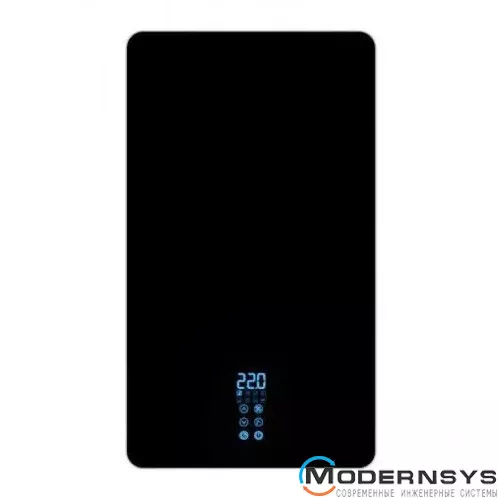 Передняя панель корпуса оформлена в современном стиле. Это позволяет использовать котел, не скрывая его в шкафах и подвалах, а делать его элементом интерьера. На передней части корпуса размещен сенсорный экран для управления. Он имеет высокий уровень отклика и упрощает взаимодействие с электрокотлом. На экране отображается текущее состояние температуры выбранного теплового датчика. Плата управления расположена в отдельном отсеке и защищена дополнительным изолирующим слоем.