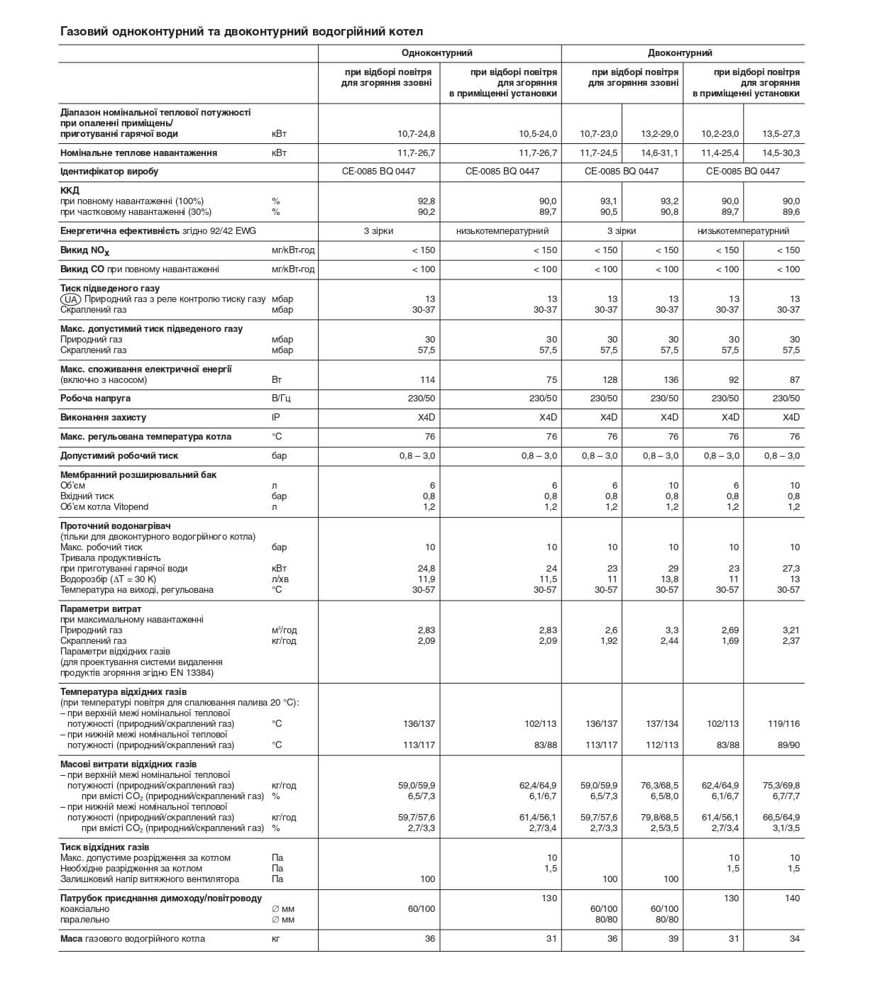 Технические характеристики: Котел газовый Viessmann (Висман) Vitopend 100-W WH1D 27,3 кВт двухконтурный дымоходный