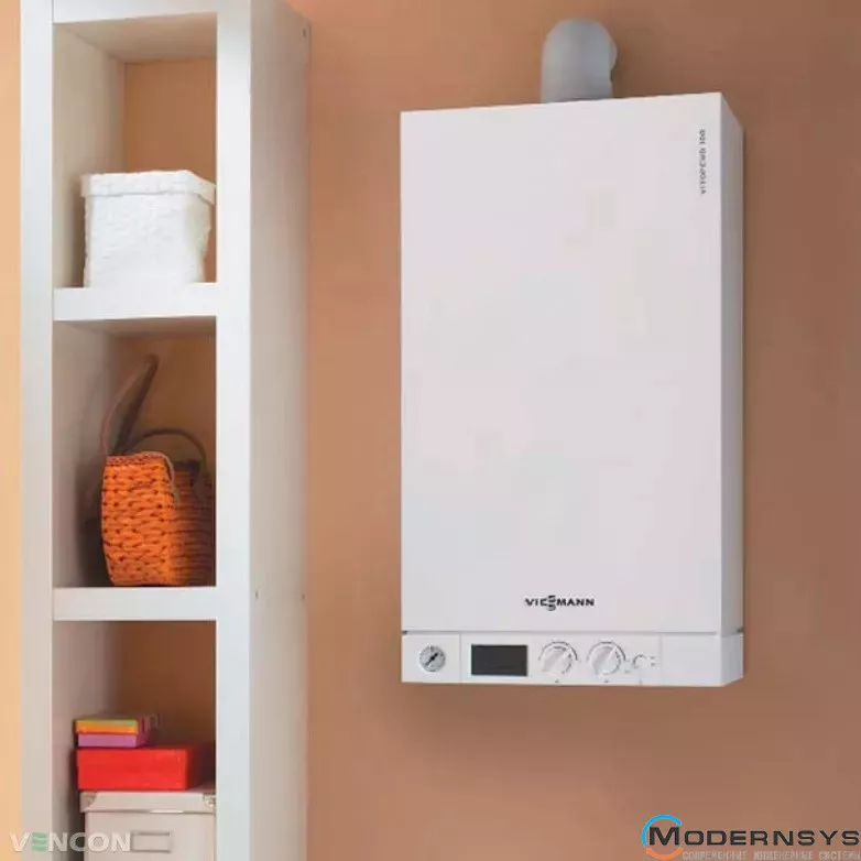 Двухконтурный настенный газовый котел Viessmann Vitopend 100-W с открытой камерой сгорания. Один из самых малогабаритных и легких котлов в своем сегменте. Жидкокристаллический дисплей.