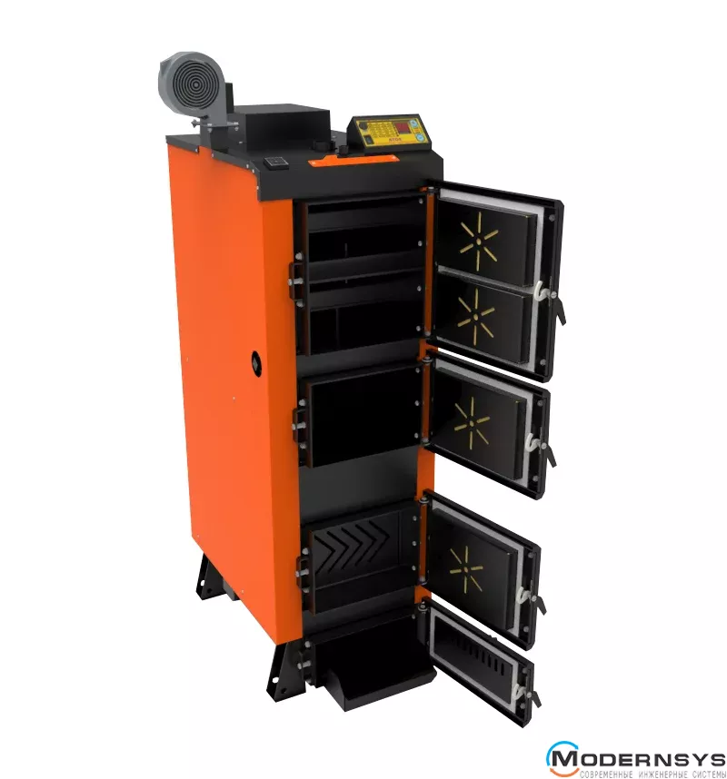 Котел оборудован вентилятором и комплектом автоматики, позволяющим: