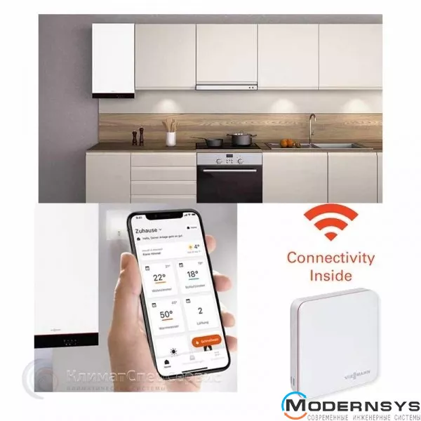 Vitodens с новой электронной платформой E3 имеет интерфейс Wi-Fi и по запросу подключает отопление напрямую к Интернету. Приложение ViCare обеспечивает удобное и интуитивно понятное управление нагревом. Он открывает путь для цифровых услуг и находится в прямом контакте с вашим установщиком. ViCare App использует функцию GPS смартфона по запросу (опция), таким образом определяя расстояние пользователя от системы отопления. В этом контексте при превышении определенного расстояния температура окружающей среды автоматически понижается. Приложение ViCare требует добавления комнатного датчика ViCare Thermostat или датчика наружной температуры (на ваш выбор) для повышения комфорта и производительности.