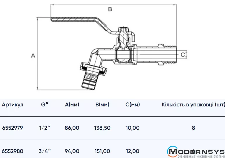Технические характеристики: Кран полива 3/4" ASG (АСГ)