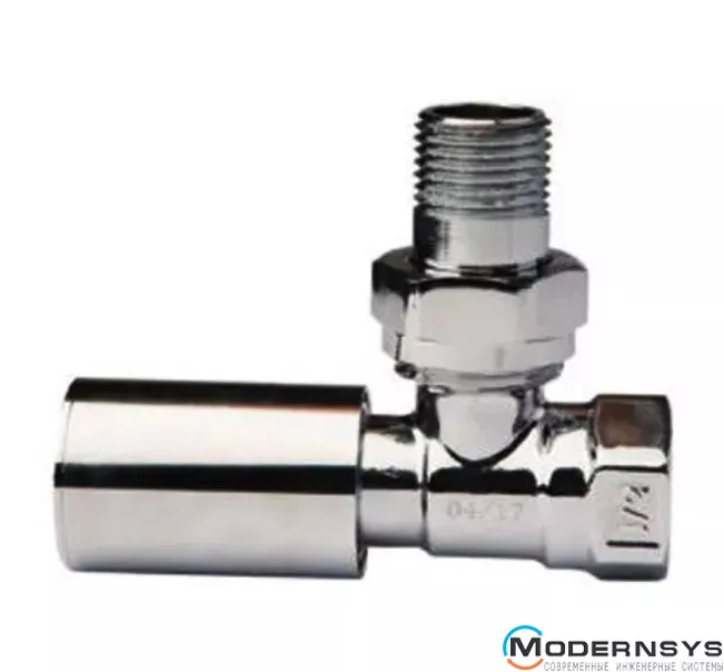 Кран радиаторный FADO New Chrome угловой верхний - полнопроходной шаровой кран с повышенным ресурсом. Соединен накидной гайкой с резьбовым полусгоном. Оснащен уплотнительным кольцом из NBR. Корпус латунный, никелированный. Рукоятка из латуни. Резьба присоединения - внутренняя / внешняя.