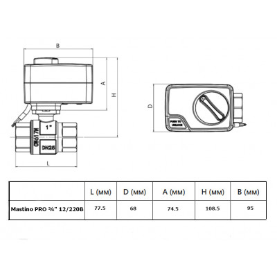Технические характеристики: Кран с электроприводом Mastino (Мастино) 12В 3/4"