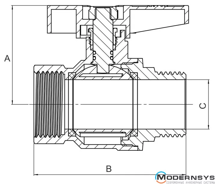 Технические характеристики: Кран шаровой 1/2" НВ бабочка ASG (АСГ)