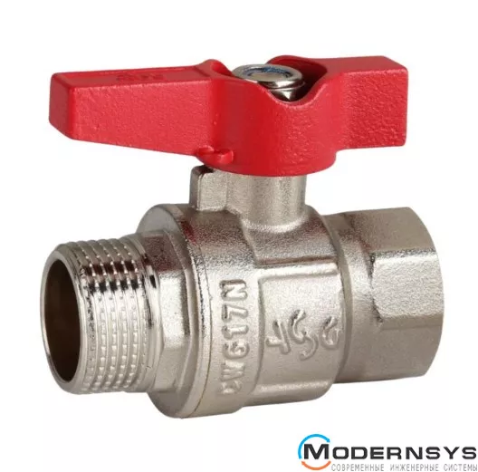 Кран шаровой 1/2" НВ бабочка ASG, Тип резьбы: Внутренняя/Наружная, Диаметр резьбы: 1/2", Модификация: Красная ручка, Исполнение: Прямой, Тип ручки: Бабочка, фото Кран шаровой 1/2" НВ бабочка ASG